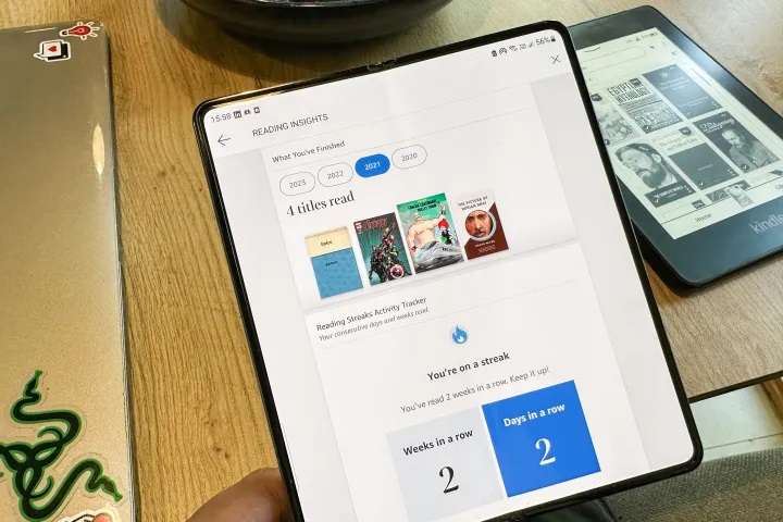 The Kindle app offers an immersive reading experience to users on foldable devices. The app displays more text on the unfolded screen and minimizes frequent scrolling.