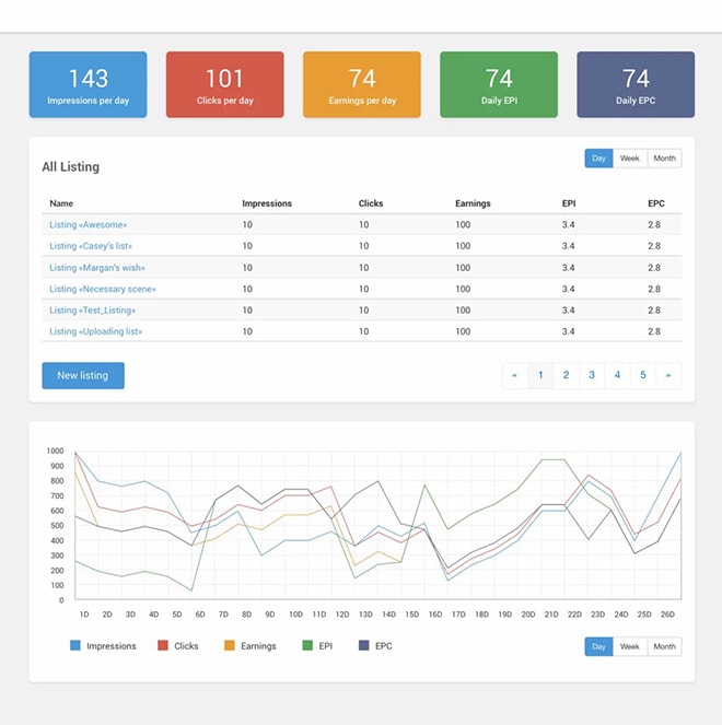 This saves Leadsmarket‘s employees and customers time by creating one template and reusing it when creating dozens of similar ads. Each view of a particular ad triggers a pingback to the API, increasing the view count as well as the earnings from each click on any ad, and the EPI for the website owners.